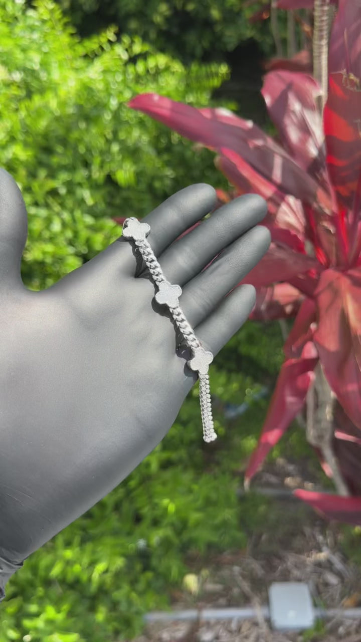 Sterling Silver Clover CZ Cuban Bracelet | Pavé Charm Link Chain | Luxury Sparkle Statement