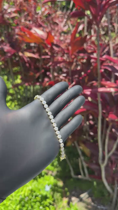 The bezel setting enhances each stone’s brilliance while the decorative connectors create a unique, high-end look that stands out from standard tennis bracelets.