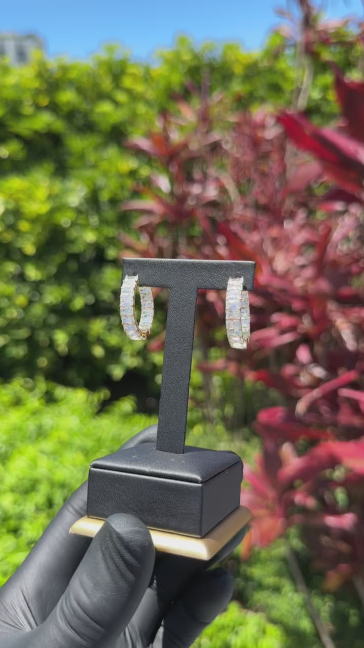 Our Diamond Baguette Earrings are a stunning addition to any jewelry collection. Expertly crafted in sterling silver or plated in 14k gold, these earrings feature sparkling diamond baguettes inside and out so they catch the light beautifully from any direction. These earrings are perfect for any occasion, whether it's a formal event or a casual night out. The unique design and high-quality materials make these earrings a perfect gift for a loved one. Add a touch of elegance to your wardrobe with these Diamond Baguette Earrings.